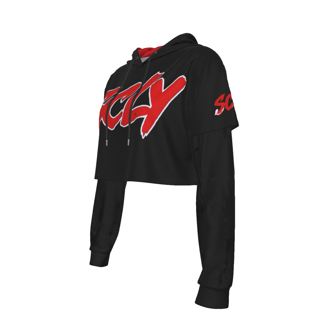 Women's Two-piece Mesh Sleeve Cropped Hoodie